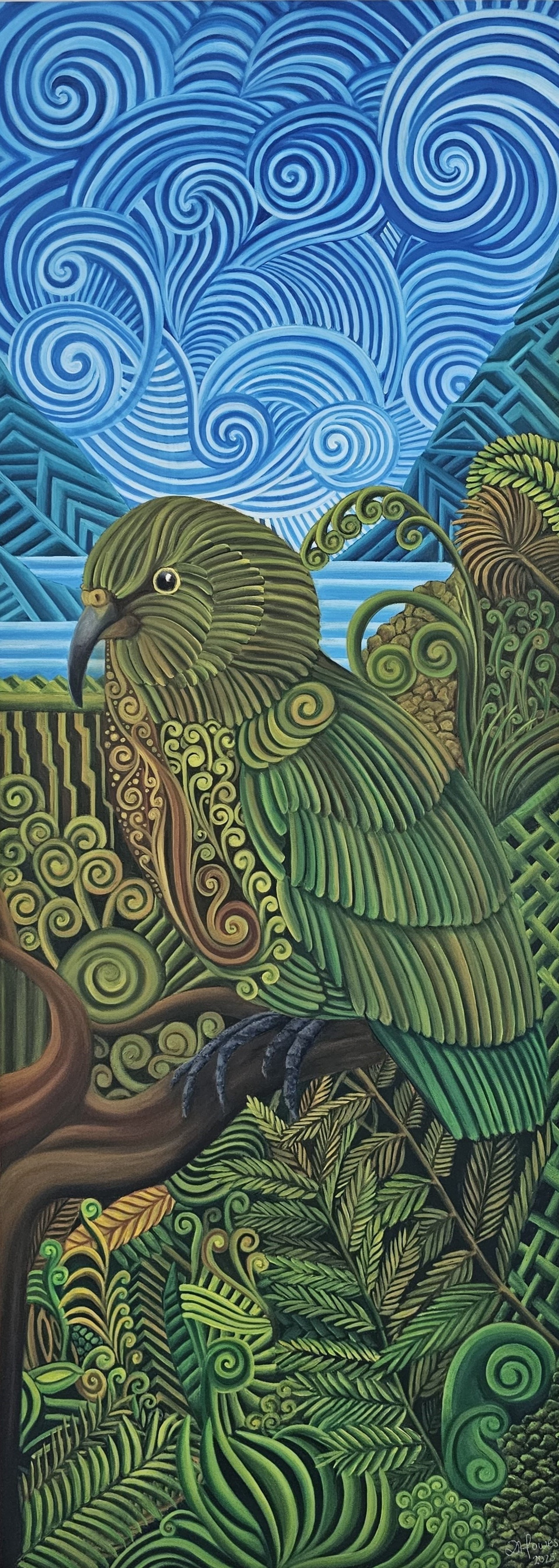 This portfolio charts my evolution as an oil painter. While I began in 2010, my practice was paused by the Christchurch earthquakes and a demanding corporate career in Wellington. Returning to Christchurch in 2020 allowed me to establish myself as a full-time artist for the first time. In those early years, I explored the versatility of oils, moving between the atmospheric depth of traditional landscapes and the clarity of hard-edged forms. The Evolution of Style My love for structure has always been a driving force. As you explore this collection, you will see works where I interpreted native birds through a distinct, architectural lens. This phase was crucial-it taught me how to break the natural world down into its essential elements. The Turning Point In 2025, a business certificate through Te Wananga o Aotearoa challenged me to define my unique artistic voice. This course was the catalyst to merge my interests, encouraging me to take the precision I loved and weave it into a new, organic narrative. Current Direction: The Woven Style My most recent work is the culmination of that journey. I have retained the definition of my earlier roots but now use it to weave the subject and background together. In this series, I am focusing specifically on the birds listed as 'In Serious Trouble' within the NZ Forest and Bird competition. These intricate patterns knit the bird tightly into its habitat, symbolising the truth that our wildlife cannot exist without the land. Originals are for sale, and they are also available as prints. Please contact me if interested. A portion of the proceeds of each sale are donated to NZ conservation efforts.